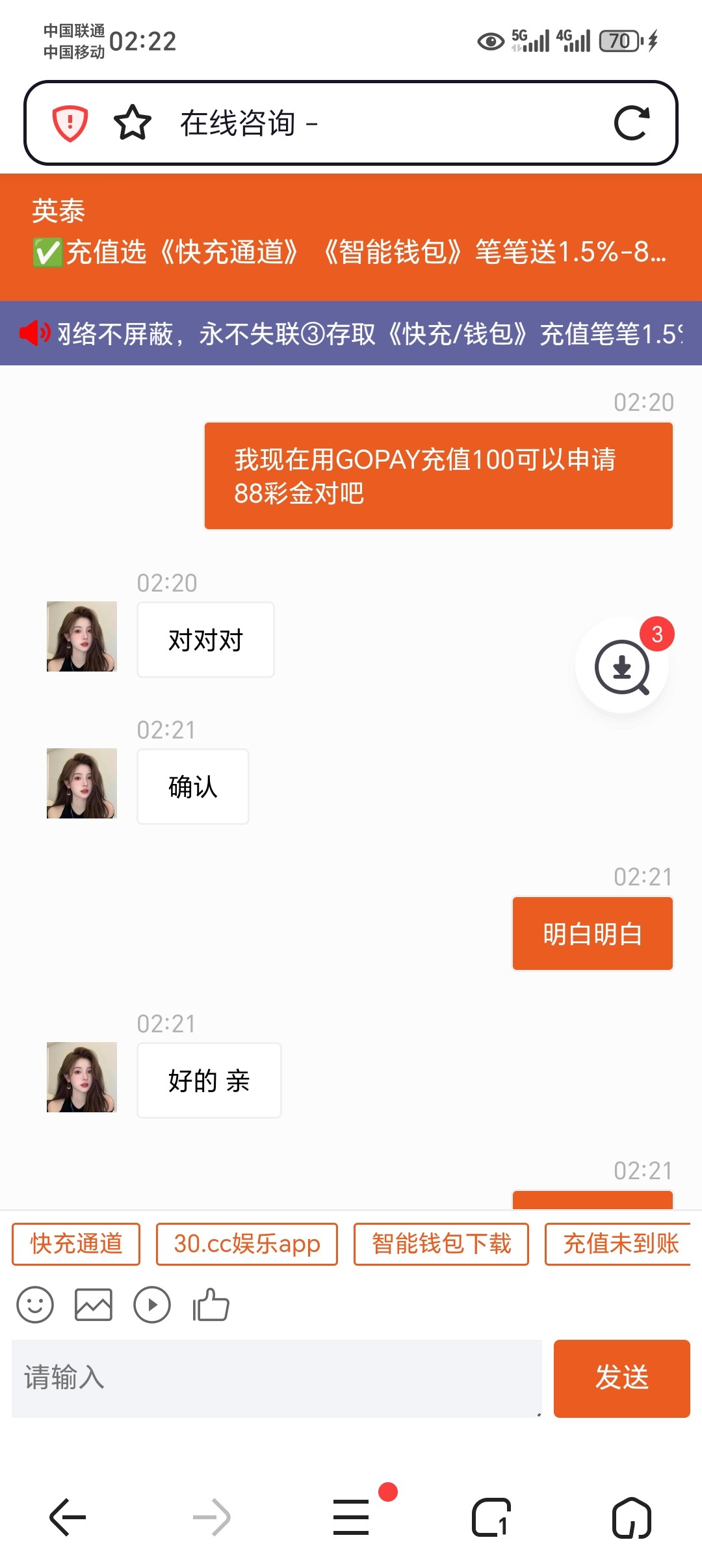 新用户首次存款1元绑定钱包地址或者银行卡,联系客服申请68彩金