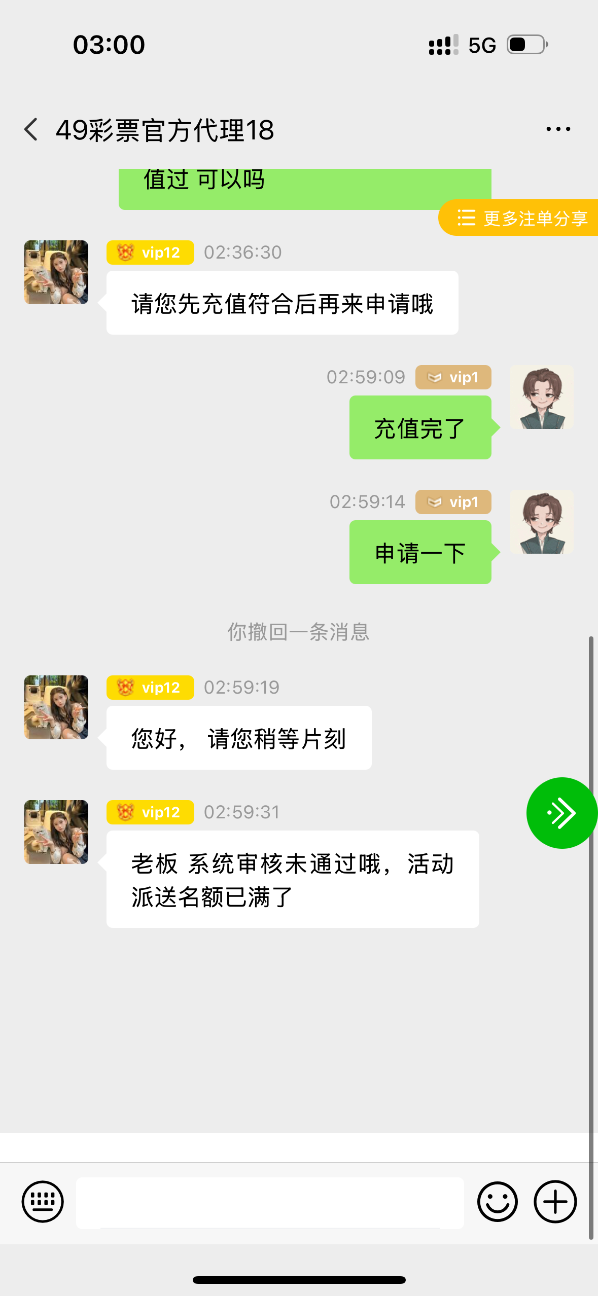 昨晚叫我充值 充值完了 说名额满了