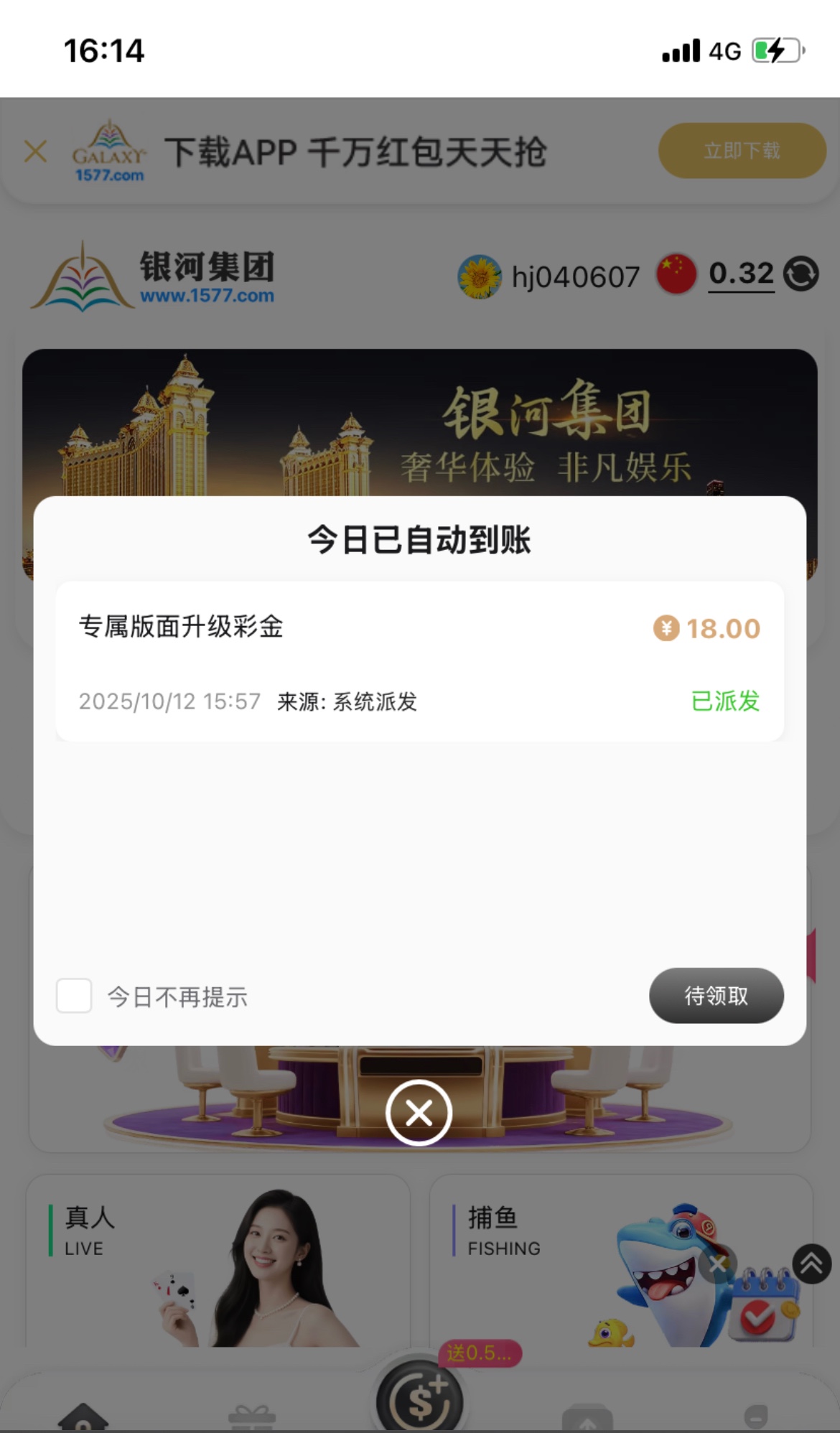 【银河1577】—✅—升级彩金